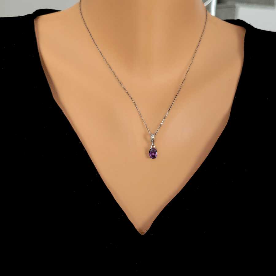 925 Ayar Gümüş Oval Küçük Boy Ametist Taşlı Kolye