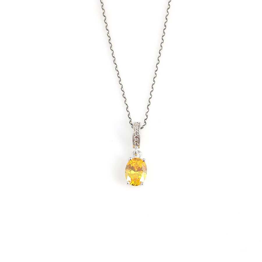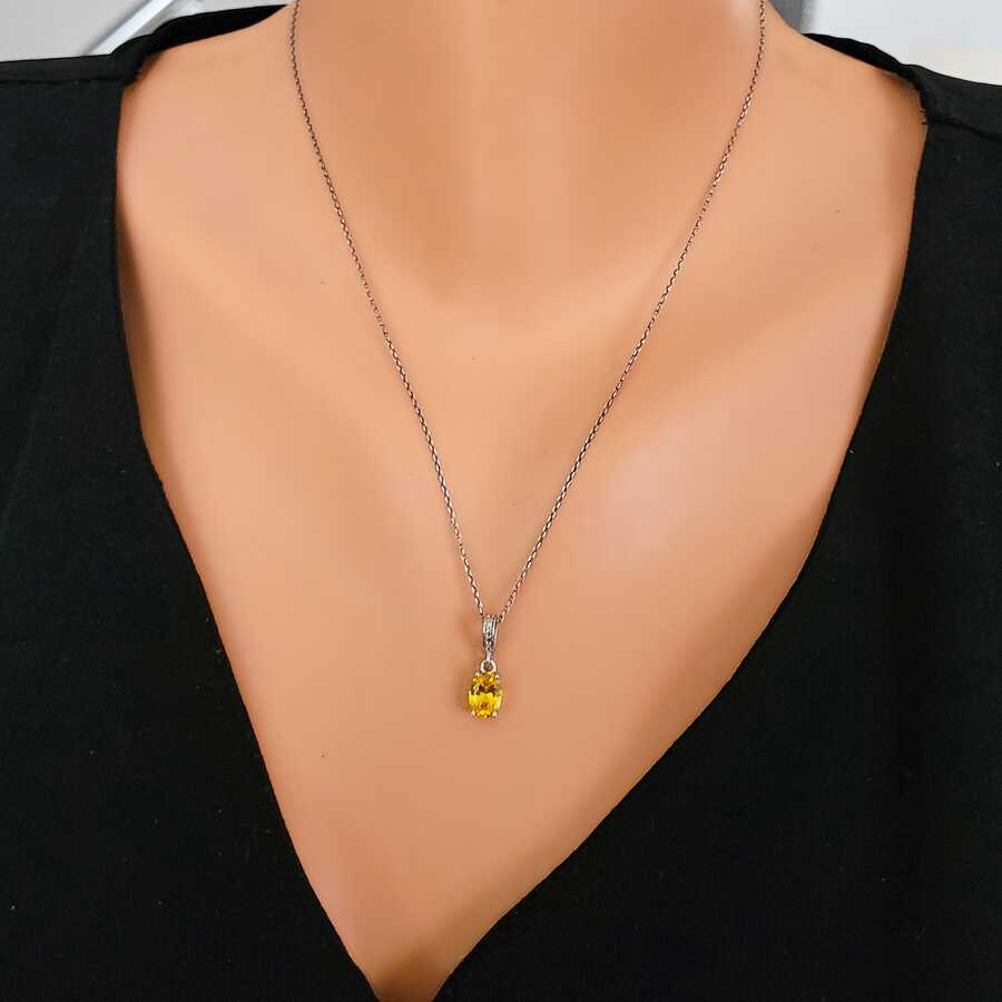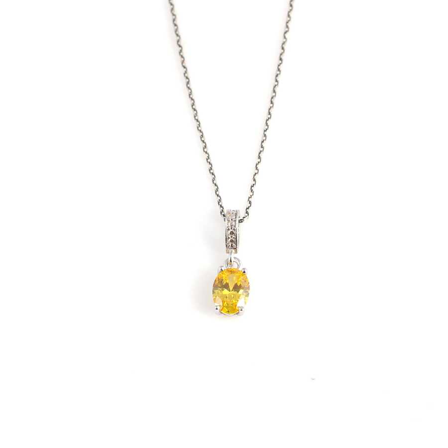 925 Ayar Gümüş Oval Küçük Boy Sarı Sitrin Taşlı Kolye