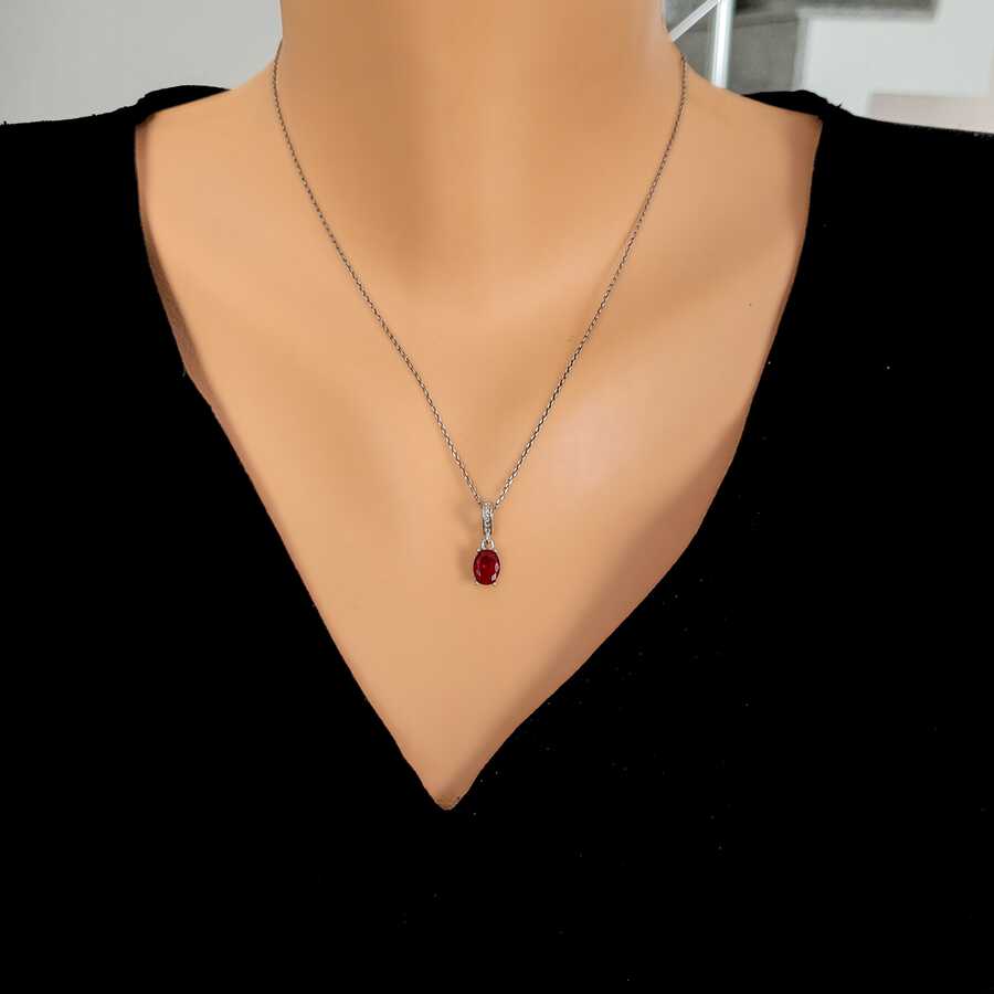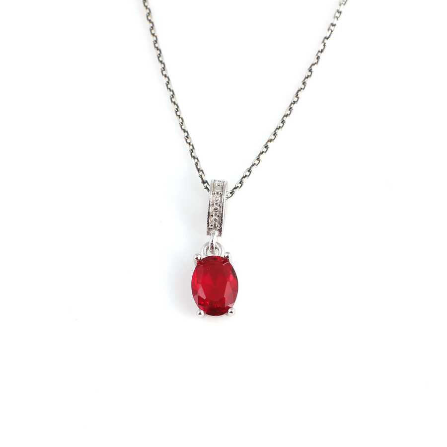 925 Ayar Gümüş Oval Küçük Boy Sentetik Yakut Taşlı Kolye