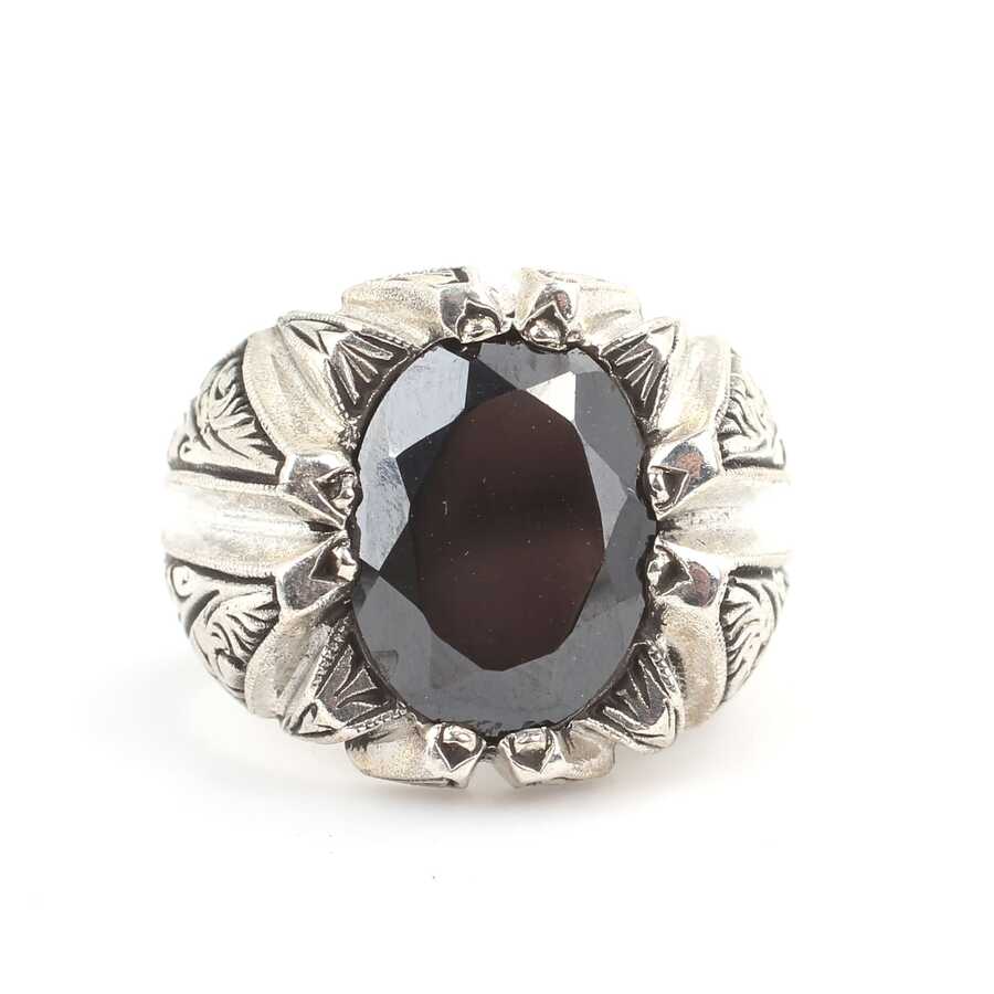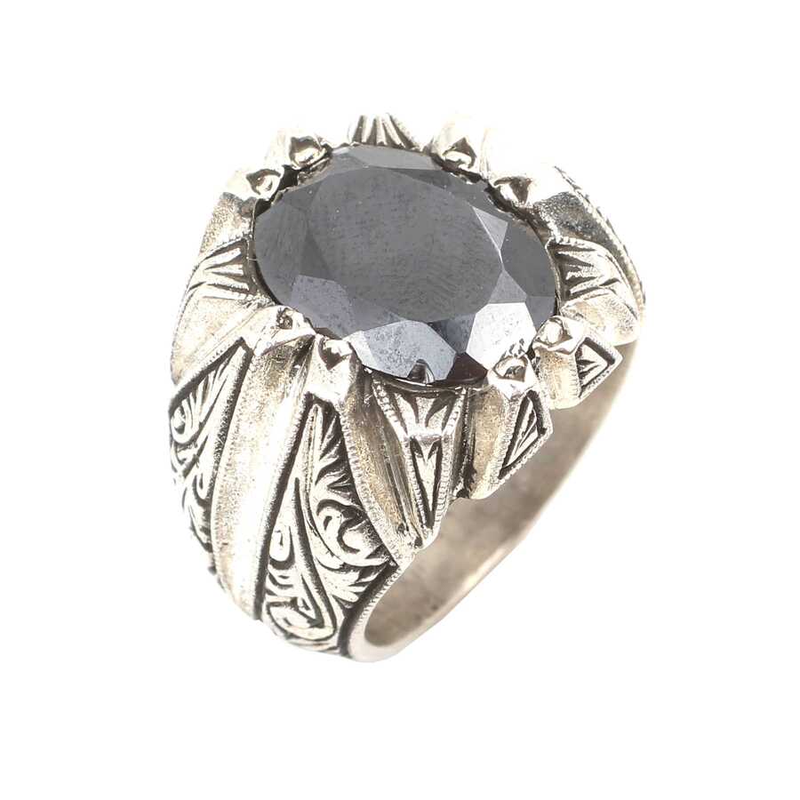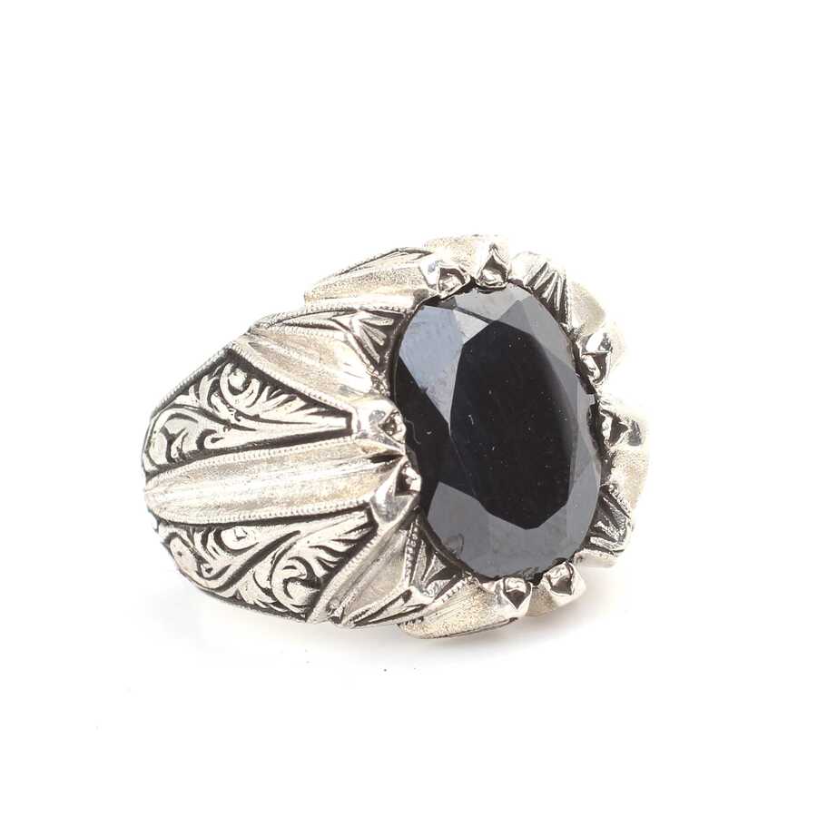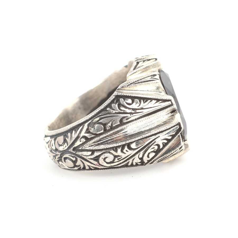 Yüzük 925 ayar gümüşten üretilmiştir. Yüzüğün üzerinde el kalemi atılarak tasarlanmıştır. Taşlı yüzük 1,5 cm'ye 1,1 cm boyutlarındadır. Resimdeki yüzük 23 ölçüdür, ancak tüm ölçüler özel olarak yapılabilmektedir. Yüzük oniks taşlıdır. Ağırlığı 23,6 gramdır.