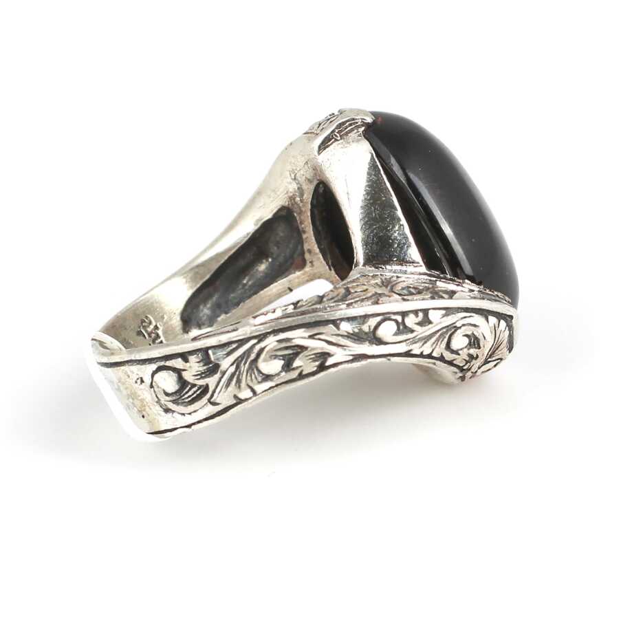 Notify me when its in stock 925 ayar gümüştür. Gümüş erkek yüzüğün üst kısmı 2,2 cm'ye 1,5 cm boyutlarındadır. Yüzüğün taş yuvası 1,7 cm'ye 1,5 cm boyutlarındadır. Resimdeki yüzüğün ölçüsü 21 ölçüdür. Yüzük oniks taşlıdır. Gramı: 14,21 gr