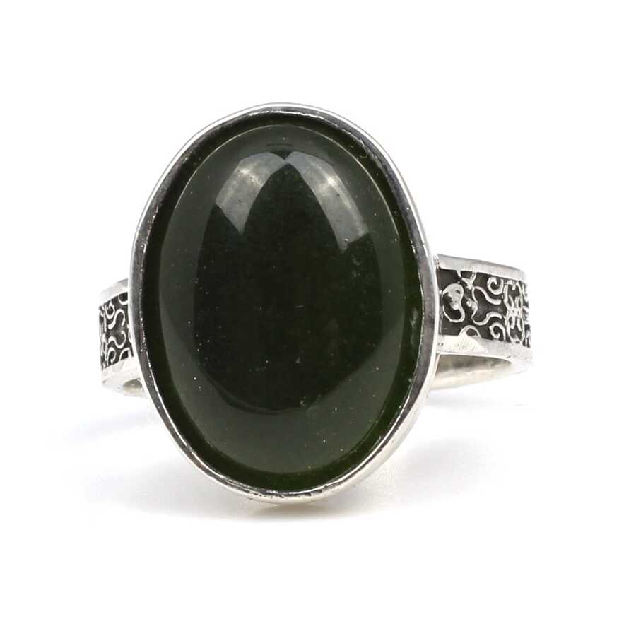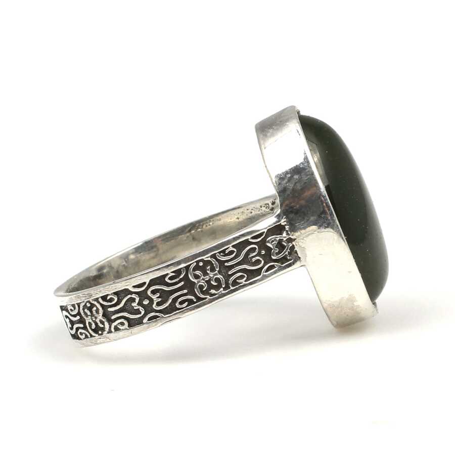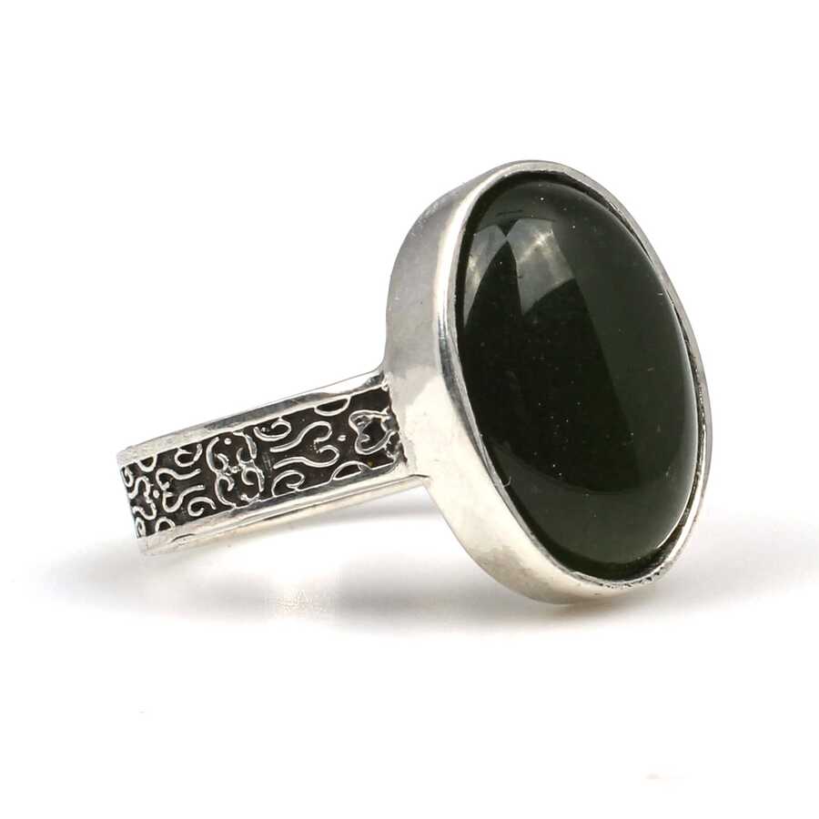 Yüzük 925 ayar gümüşten üretilmiştir. Oval taş yuvalı ve kolları işleme desenli yüzük 1,2 cm'ye 1,6 cm boyutlarındadır. Resimdeki yüzük 14 ölçüdür, ancak tüm ölçüler yapılabilmektedir. Yüzük oniks renk taşlıdır. Ağırlığı 5,86 gramdır.