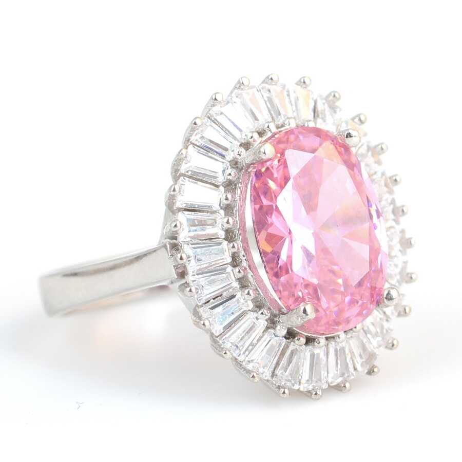 Yüzük 925 ayar gümüşten üretilmiştir. Oval taşlı anturaj model yüzüğün taşı 1,0 cm'ye 1,4 cm boyutlarındadır. Yüzüğün üst kısmı 2,2 cm'ye 1,9 cm boyutlarındadır. Resimdeki yüzük 20 ölçüdür, ancak tüm ölçüler yapılabilmektedir. Yüzük zirkon ve pembe kuvars taşlıdır. Ağırlığı 7,15 gramdır.