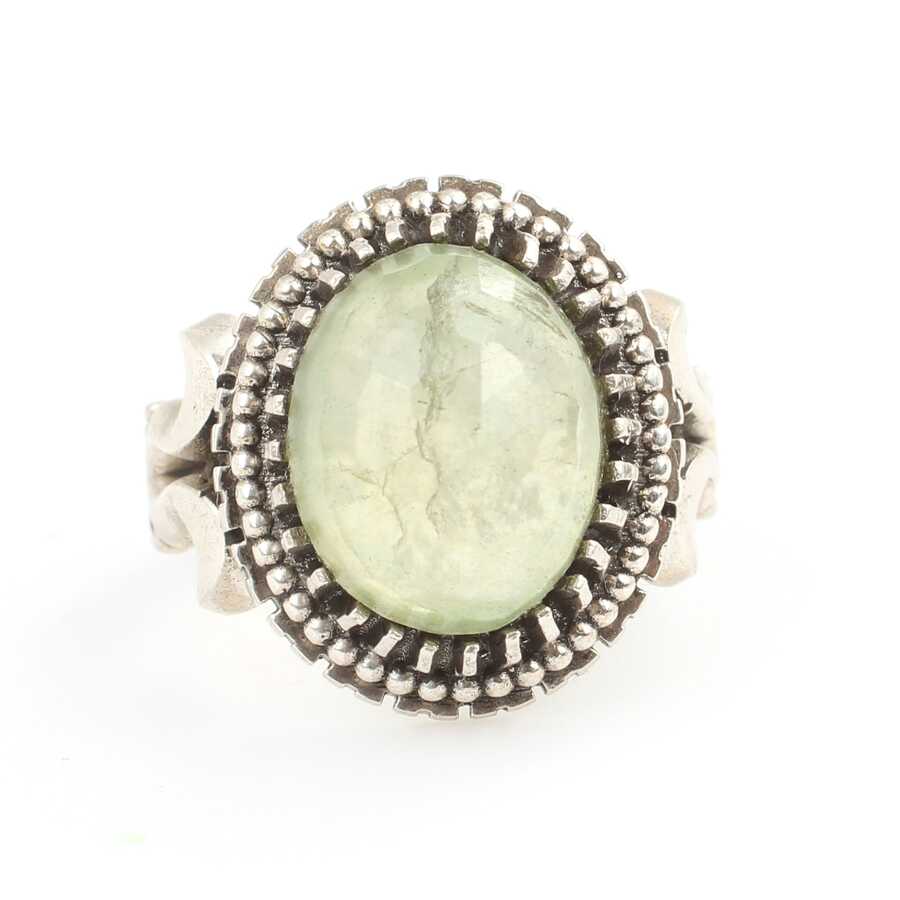 925 Ayar Gümüş Oval Prehnite Taşlı Erkek Yüzüğü