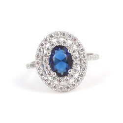Notify me when its in stock Gümüş yüzük 925 ayar gümüşten yapılmıştır. Oval çift sıra anturaj model yüzüğün üst kısmı 1,6 cm'ye 1,3 cm boyutlarındadır. Safir renk taşı 0,8 cm'ye 0,6 cm boyutlarındadır. Küpe beyaz ve safir renk zirkon taşlıdır. Yüzük 13 ölçüdür. Tüm ölçüler yapılabilmektedir. Ağırlığı 2,75 gramdır.