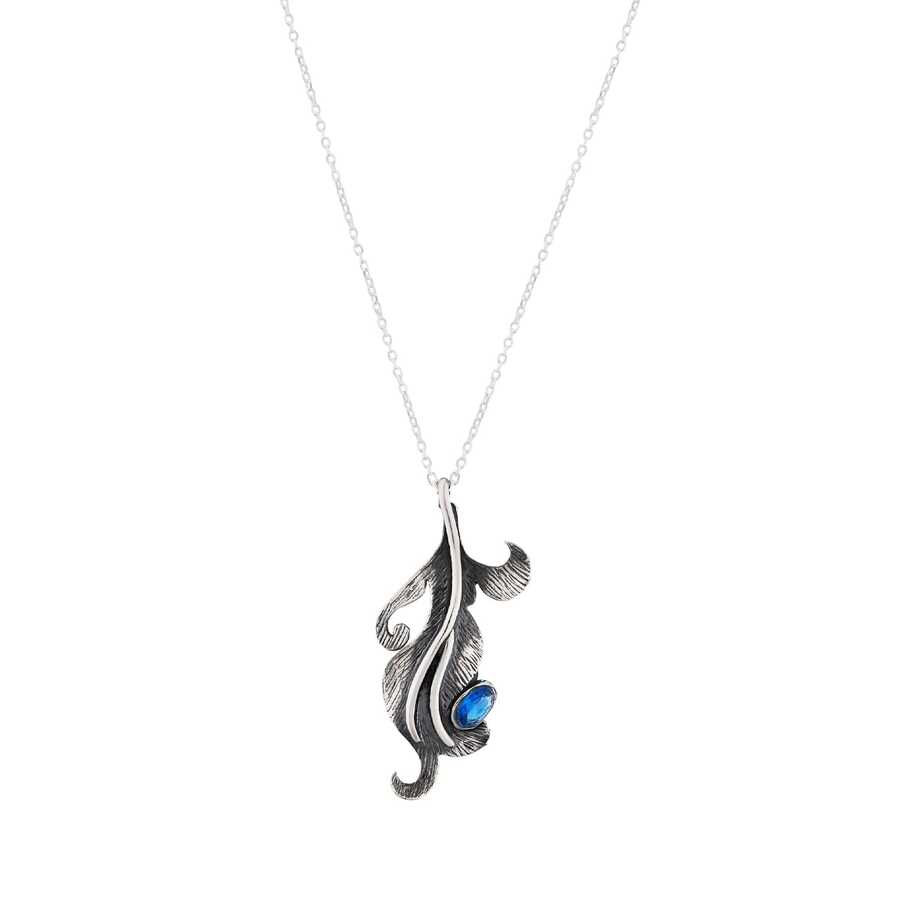 925 Ayar Gümüş Oval Safir Taşlı Yaprak Kolye