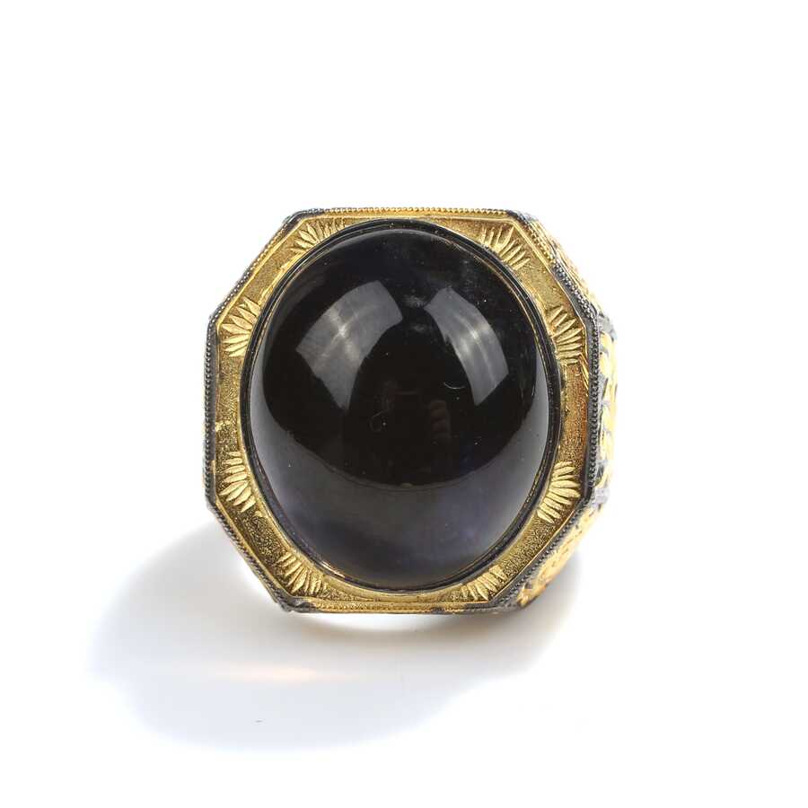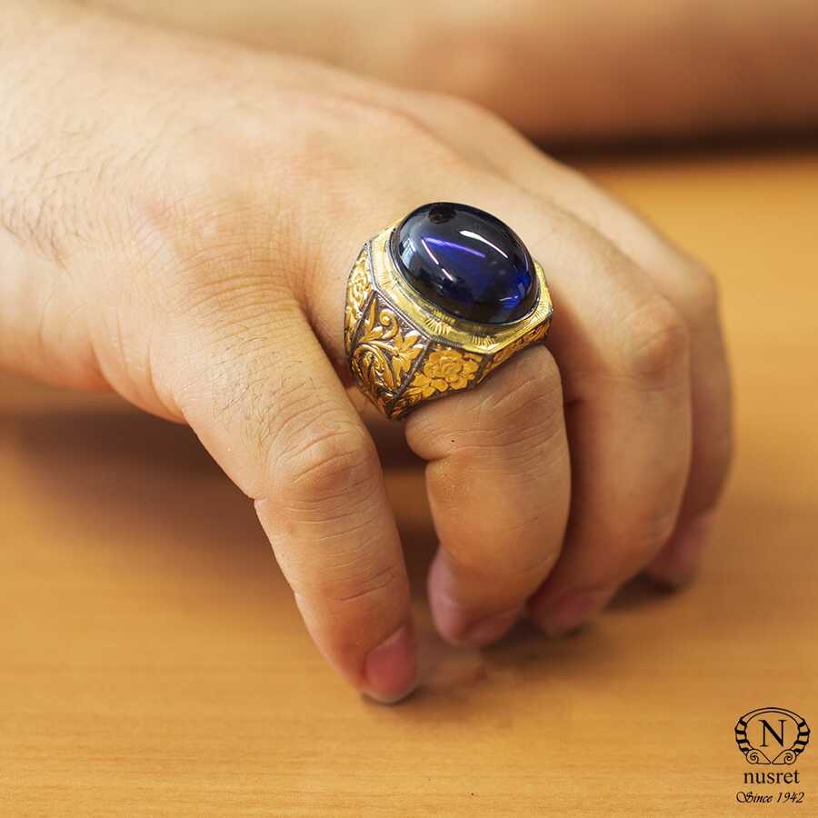 Yüzük 925 ayar gümüşten üretilmiştir. Yüzüğün üzerinde el kalemi atılarak tasarlanmıştır. Taşlı yüzük 2,3 cm'ye 1,9 cm boyutlarındadır. Resimdeki yüzük 25 ölçüdür, ancak tüm ölçüler özel olarak yapılabilmektedir. Yüzük sentetik safir taşlıdır. Ağırlığı 29,21 gramdır.