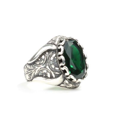 Yüzük 925 ayar gümüşten üretilmiştir. Yüzüğün üzerinde el kalemi atılarak tasarlanmıştır. Taşlı yüzük 2,5 cm'ye 2,4 cm boyutlarındadır. Resimdeki yüzük 26 ölçüdür, ancak tüm ölçüler özel olarak yapılabilmektedir. Yüzük sentetik zümrüt taşlıdır. Ağırlığı 16,57 gramdır.