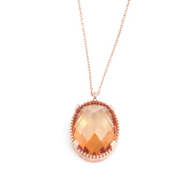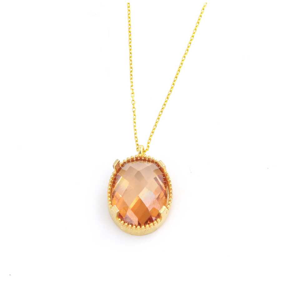 925 Ayar Gümüş Oval Sitrin Taşlı Kolye