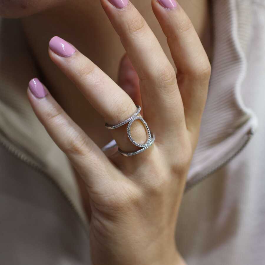 925 Ayar Gümüş Oval Taşlı Tasarım Yüzük