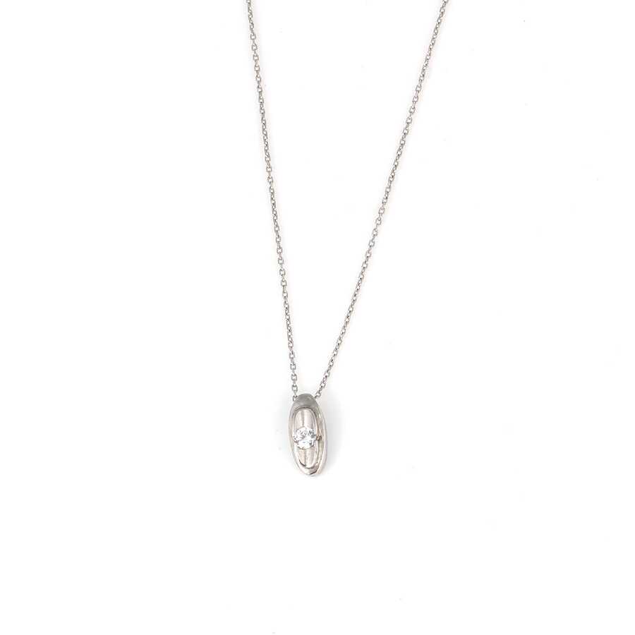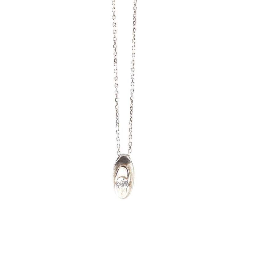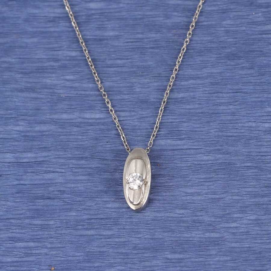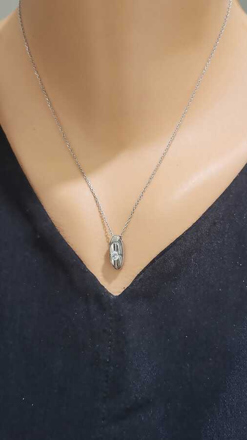 Gümüş kolye 925 ayar gümüşten yapılmıştır. Oval tektaş kolye 0,6 cm'ye 0,9 cm boyutlarındadır. Zinciri 45 cm uzunluğundadır. Kolye zirkon taşlıdır. Ağırlığı 1,02 gramdır.