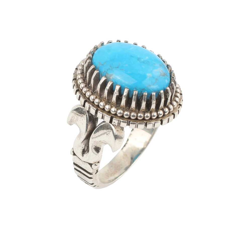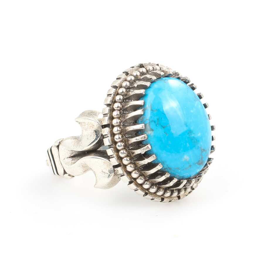 925 Ayar Gümüş Oval Turkuaz Taşlı Erkek Yüzüğü