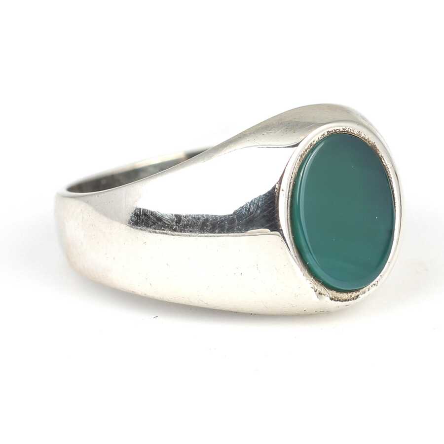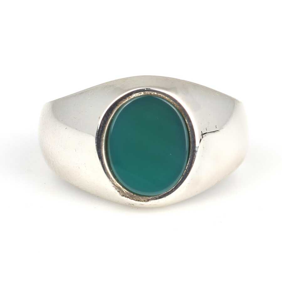 925 Ayar Gümüş Oval Yeşil Akik Taşlı Erkek Yüzüğü