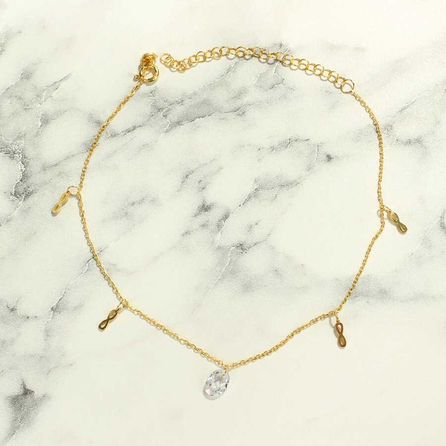 925 ayar gümüştür. Oval zirkon taşlı 4 adet sonsuzluk modelden oluşur. Halhal uzunluğu: 20,5 cm + 5 cm uzatma zinciri vardır. Sarı renktedir. Gramı: 1,77 gr925 Ayar Gümüş Oval Zirkon Taşlı Sonsuzluk Model Halhal