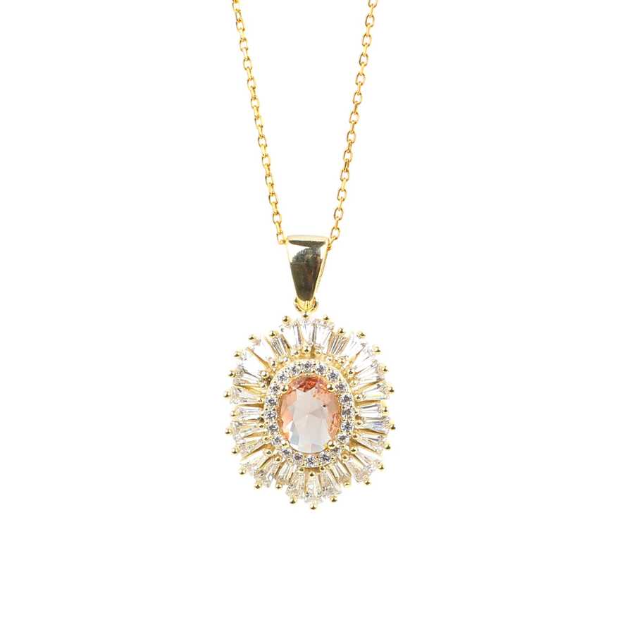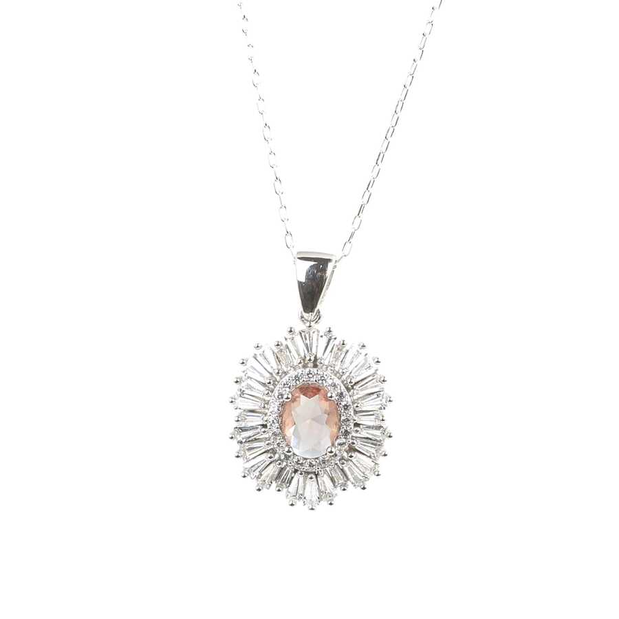 925 Ayar Gümüş Oval Zultanit, Baget ve Zirkon Taş Kolye