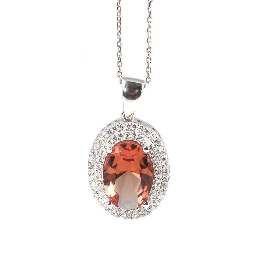 925 Ayar Gümüş Oval Zultanit, Çift Sıra Zirkon Taş Çevrili Kolye