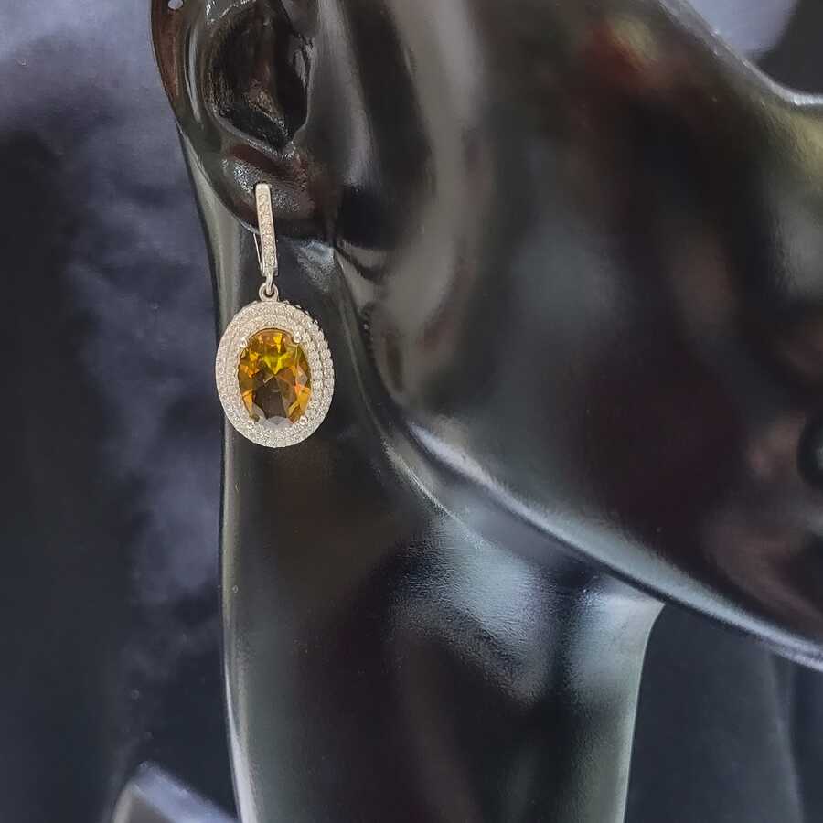 Gümüş küpe 925 ayar gümüşten yapılmıştır. Oval şeklindeki anturaj model sallantılı küpedir. Zultanit taşı 1,4 cm'ye 1,0 cm boyutlarındadır. Küpe beyaz zirkon ve zultanit taşlıdır. Ağırlığı 9,1 gramdır.