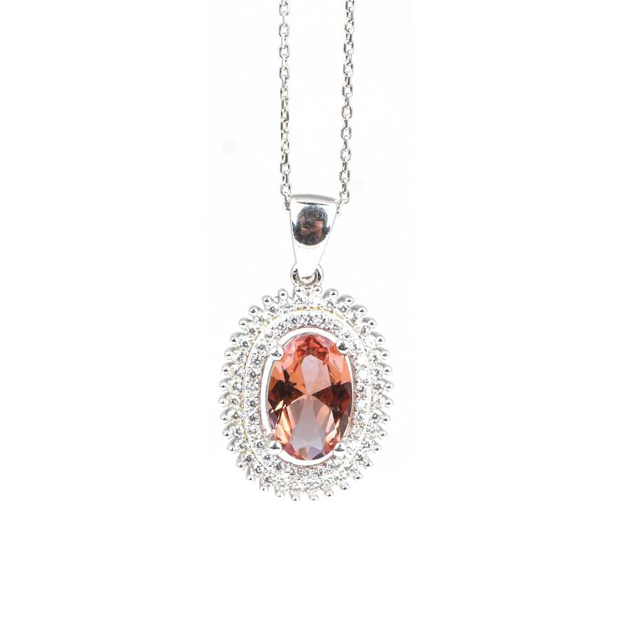 925 Ayar Gümüş Oval Zultanit Taşlı Yanları Çift Sıra Zirkon Taşlı Kolye