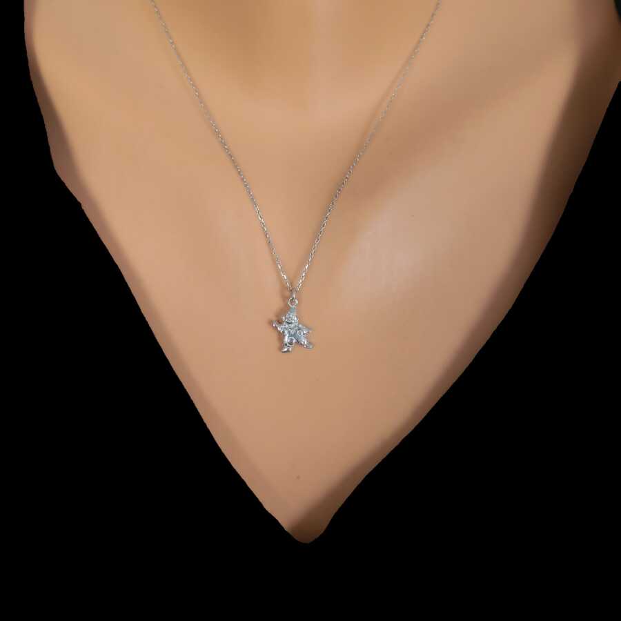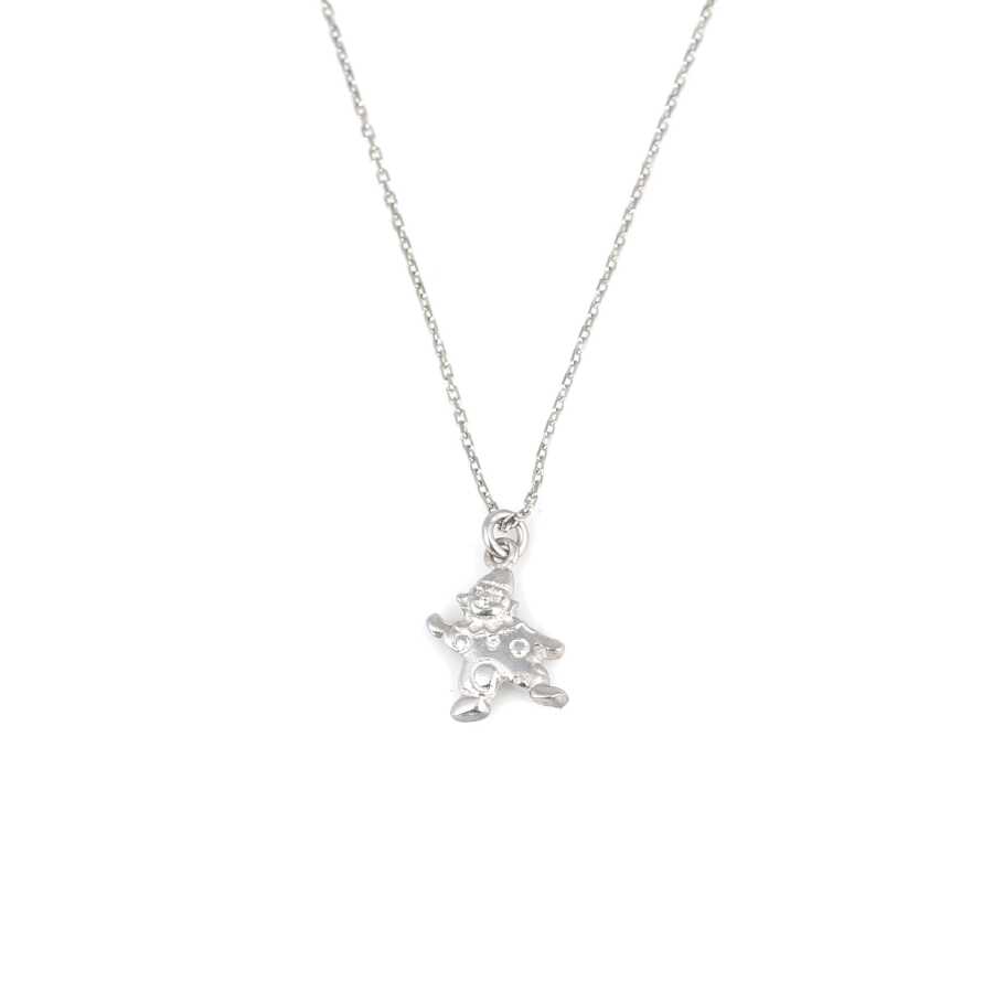 Gümüş kolye 925 ayar gümüşten yapılmıştır. Palyaço model kolye 1,5 cm boyutlarındadır. Zinciri 45 cm uzunluğundadır ve taşsızdır. Ağırlığı 2,1 gramdır.