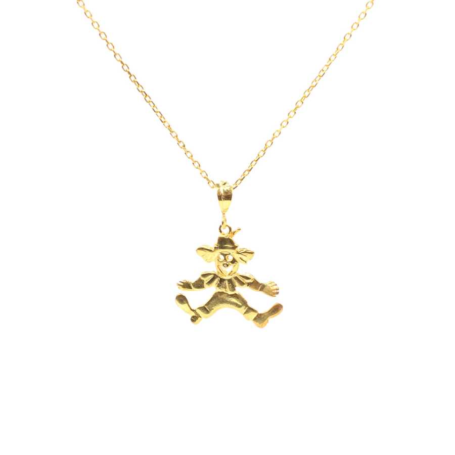 925 ayar gümüştür. 925 Ayar Gümüş Palyaço Kolye boyutu: 1,9 x 1,7 cm (tepelik dahil değildir.) taşsızdır. palyaço alt ayakları hareketli, oynaktır. 45 cm zinciri vardır. Kolye istediğiniz renk kaplama yapılmaktadır. (Sarı, gümüş, rose (pembe)) Gramı: 2,3 gr