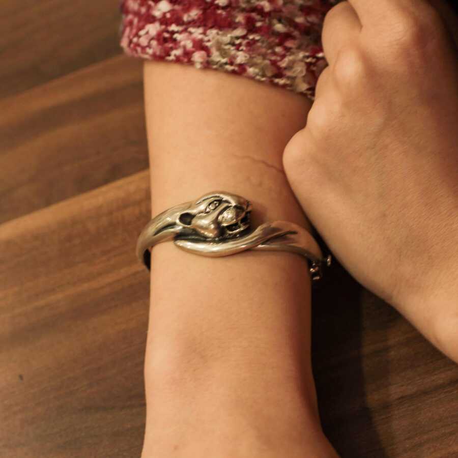 Bilezik 925 ayar gümüşten imal edilmiştir. Panter kafası model bilezik 2,3 cm eninde ve 5,9 cm çapındadır. Bilezik taşsızıdır. Gümüş bilezik 24,82 gram ağırlığındadır.