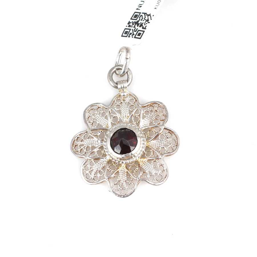 Gümüş kolye ucu 925 ayar gümüşten üretilmiştir. Papatya şeklindeki kolye ucu tepelik dahil 4,0 cm'ye 2,7 cm boyutlarındadır. Kolye ucu garnet taşlıdır. Kolye ucuna zincir dahil değildir. Ağırlığı 4,83 gramdır.