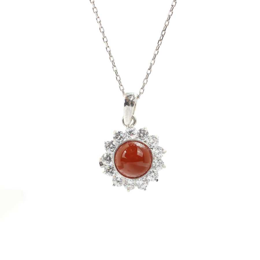 925 Ayar Gümüş Papatya Tasarım Akik Taşlı Kolye