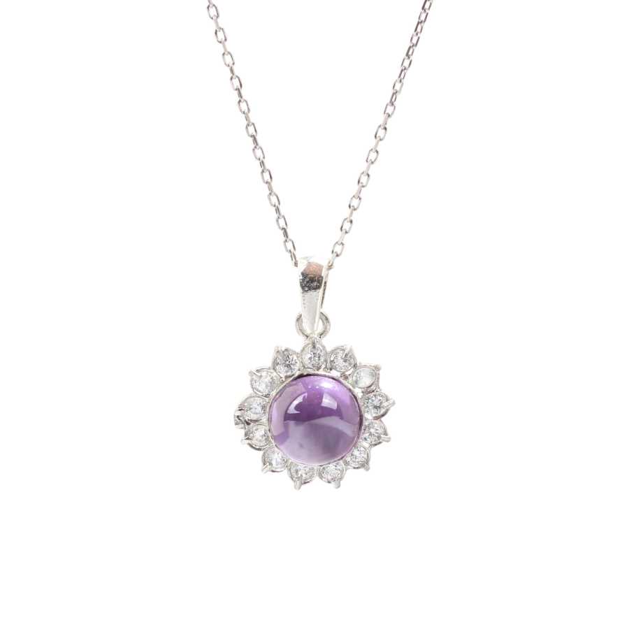 925 Ayar Gümüş Papatya Tasarım Ametist Taşlı Kolye