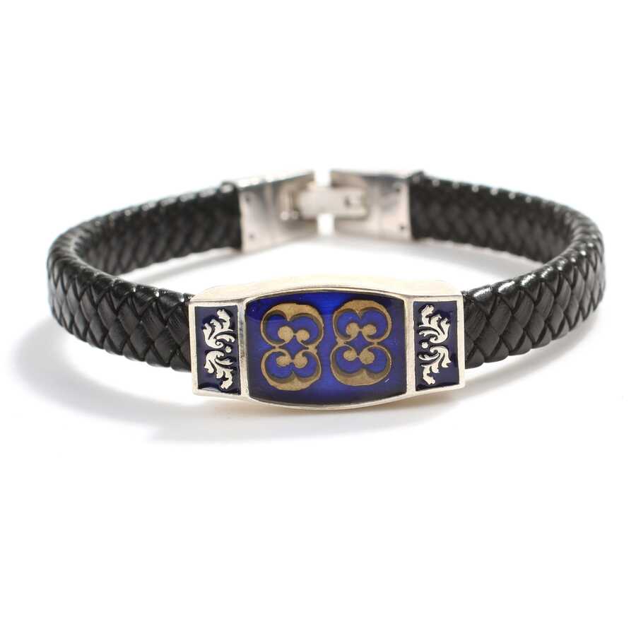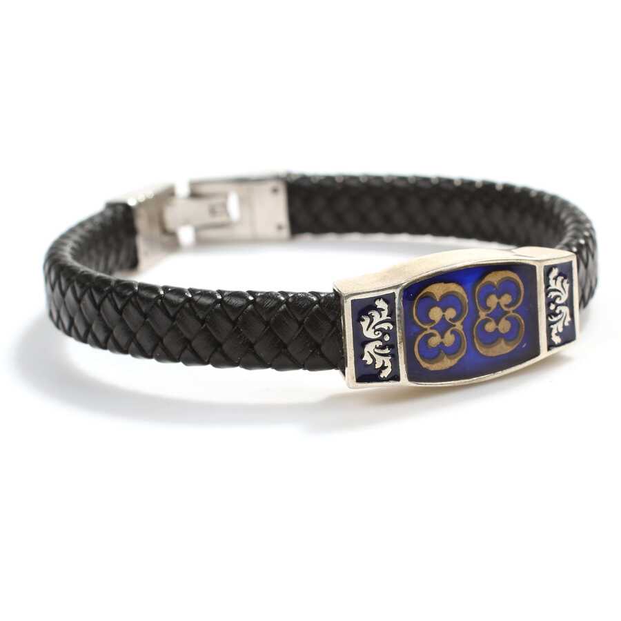 Bileklik 925 ayar gümüşten imal edilmiştir. Bileklik 22 cm uzunluğundadır. Siyah renk deri bilekliğin ortasında lacivert mineli desenli gümüş parça vardır. Gümüş bileklik 30,92 gram ağırlığındadır.