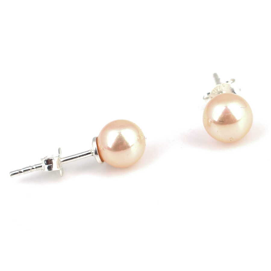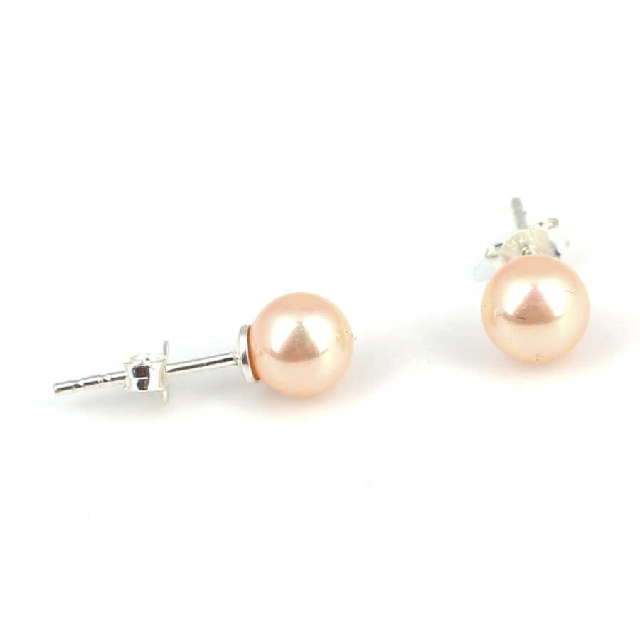 925 Ayar Gümüş Pembe İnci Taşlı Minik Top Küpe