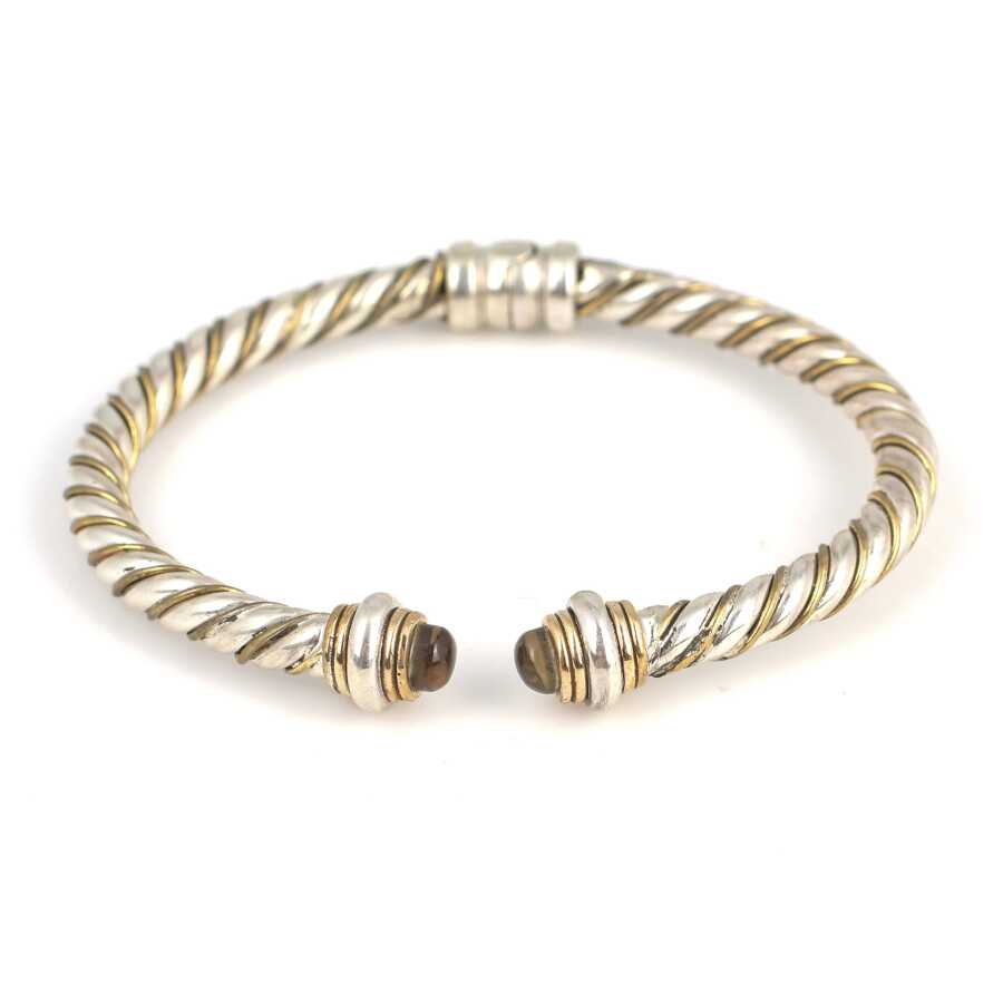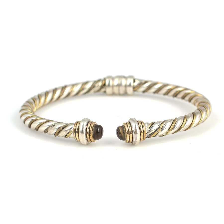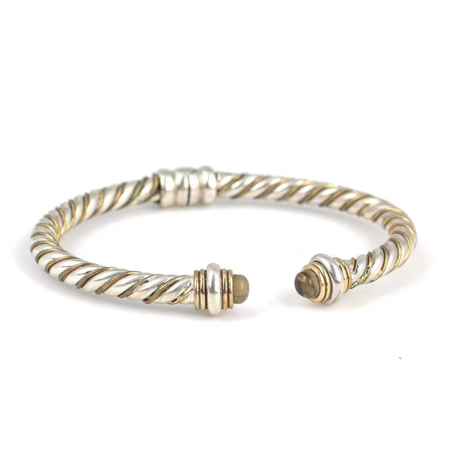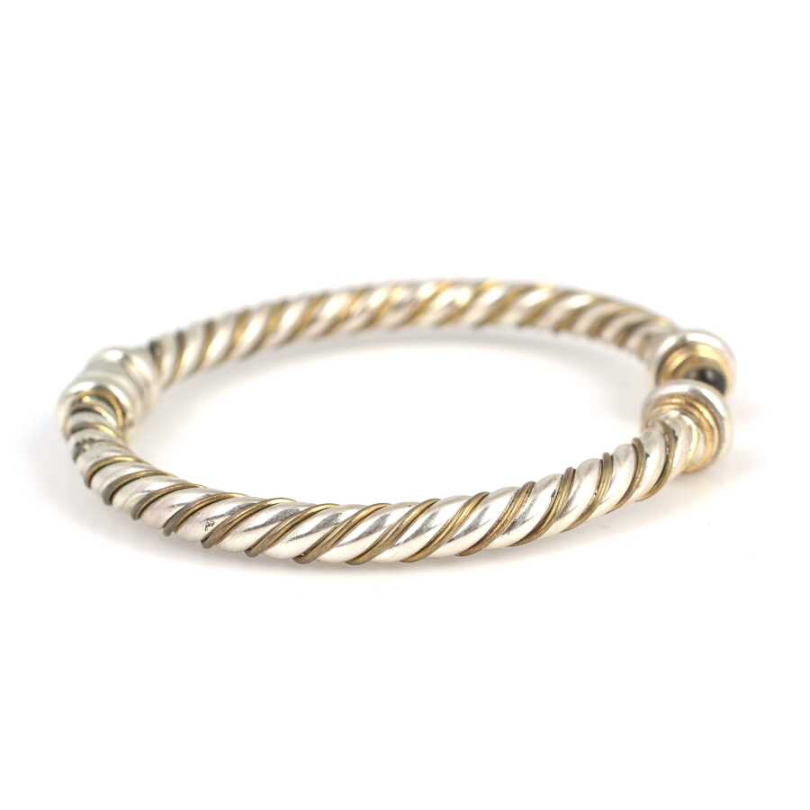 Bilezik 925 ayar gümüşten imal edilmiştir. Çift renkli 3 tel burgu bilezik 5,9 cm çapındadır. Bileziğin önü 0,9 cm genişliğindedir. Bilezik yaylı ve peridot taşlıdır.Ağırlığı 28,18 gramdır.