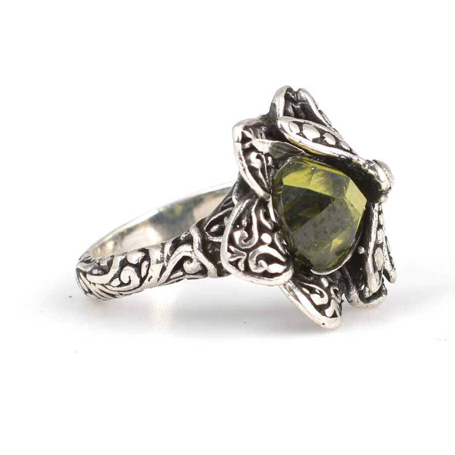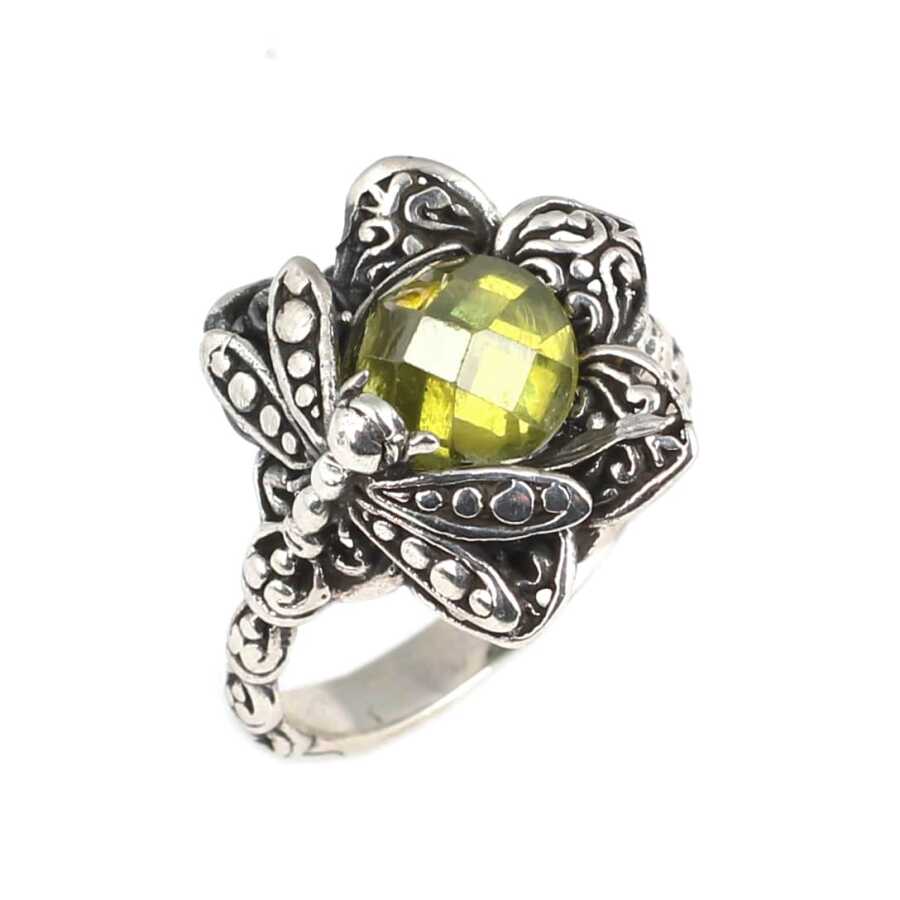 925 Ayar Gümüş Peridot Taşlı Yusufçuk Böcekli Yüzük
