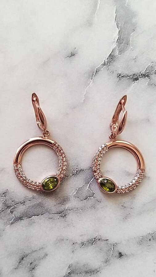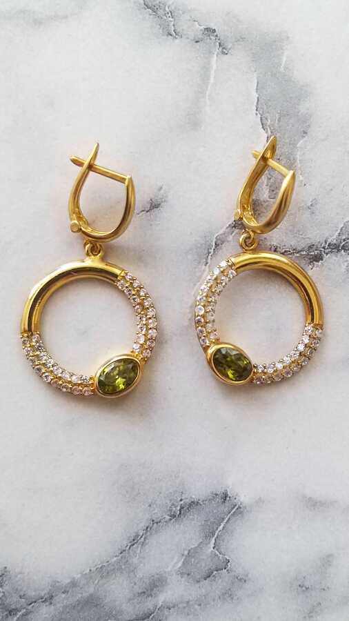 925 Ayar Gümüş Peridot & Zirkon Taşlı Küpe