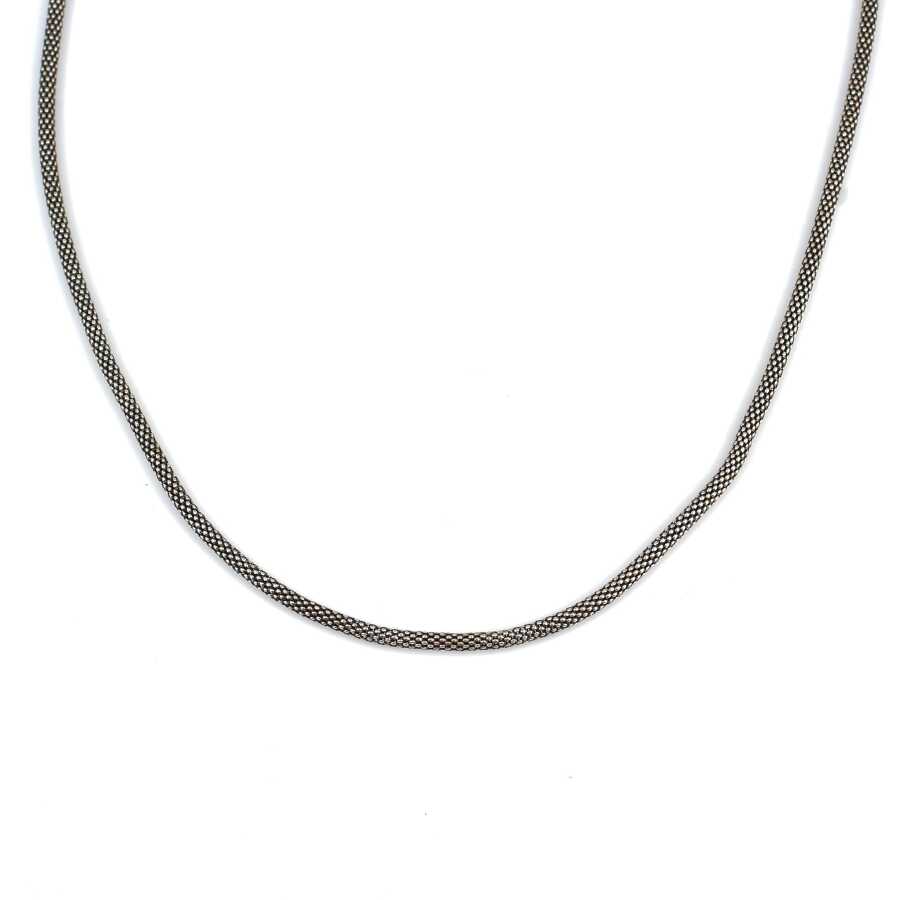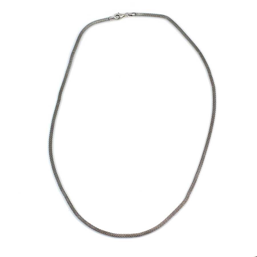 Gümüş kolye 925 ayar gümüşten yapılmıştır. Popcorn model zincir kolye 0,3 cm kalınlığındadır. Kolye 59 cm uzunluğundadır. Kolye taşsızdır. Gümüş kolye 9,04 gramdır.