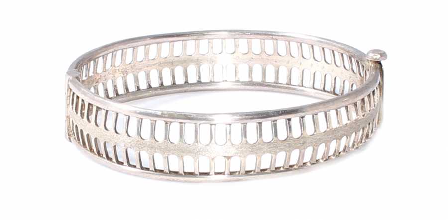 925 ayar gümüş 6,7 cm çaplı, pres ajurlu bilezik. Gramı: 29,1
