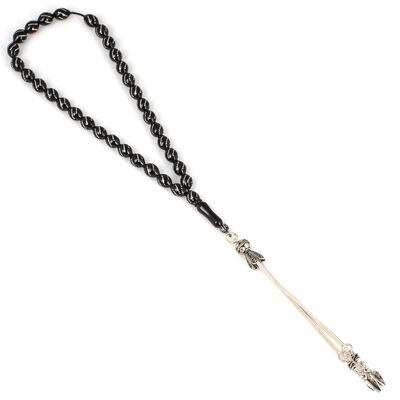 925 Ayar Gümüş Püsküllü Badem Kesim Oltu Taşı Tesbih