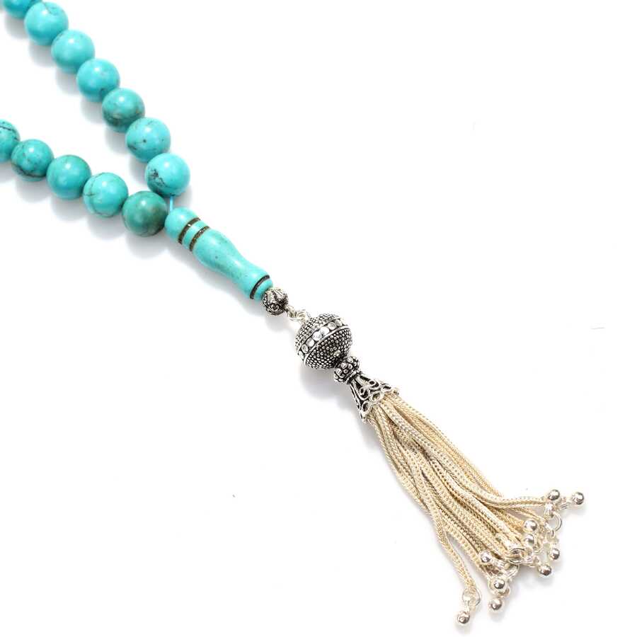 925 Ayar Gümüş Püsküllü Firuze Taşlı 99' lu Tesbih