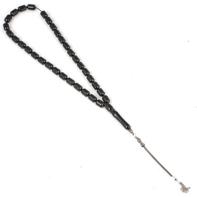 925 Ayar Gümüş Püsküllü Silindir Kesim Oltu Taşı Tesbih