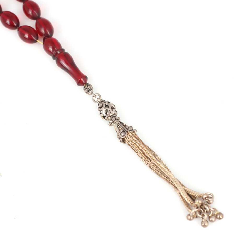 925 Ayar Gümüş Püsküllü Turuncu Sıkma Kehribar Tesbih