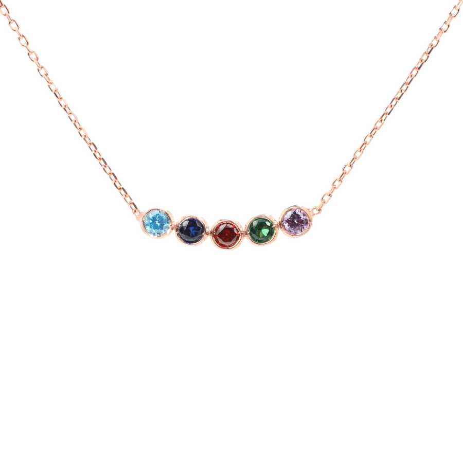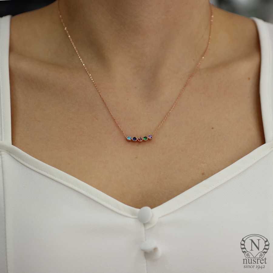 925 Ayar Gümüş Renkli Taşlı 5 Sıra Suyolu Kolye