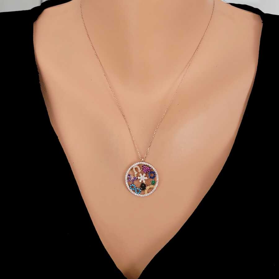 925 Ayar Gümüş Renkli Taşlı Şans Kolyesi