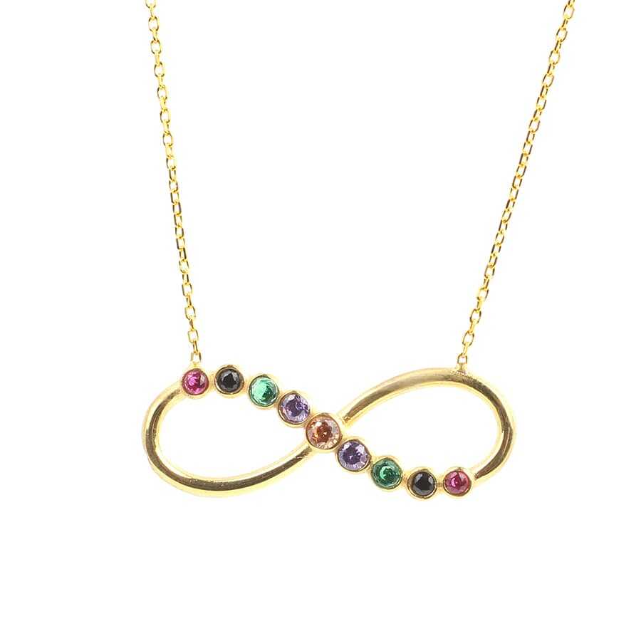 925 ayar gümüştür. Renkli taşlı sonsuzluk kolye 40 + 5 uzatma zinciri ile toplam 45 cm uzunlukta sarı renkli pembe renkli ve beyaz renkli yapılır. Gramı: 2,83 gr 925 Ayar Gümüş Renkli Taşlı Sonsuzluk Kolye