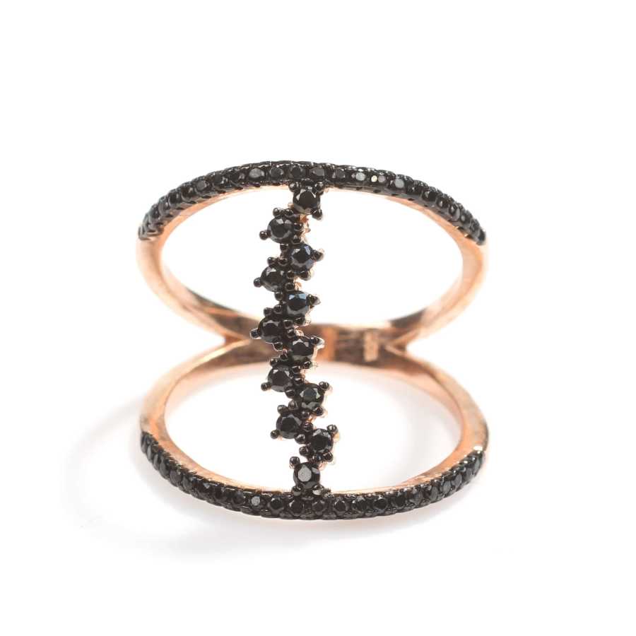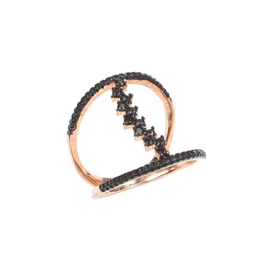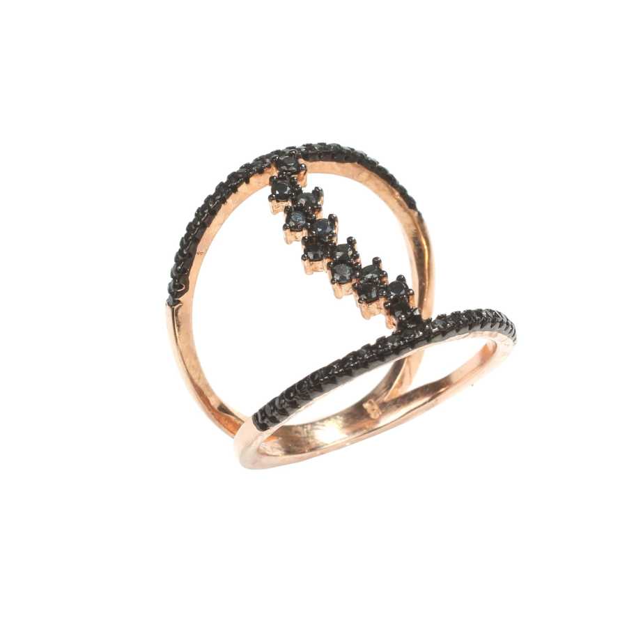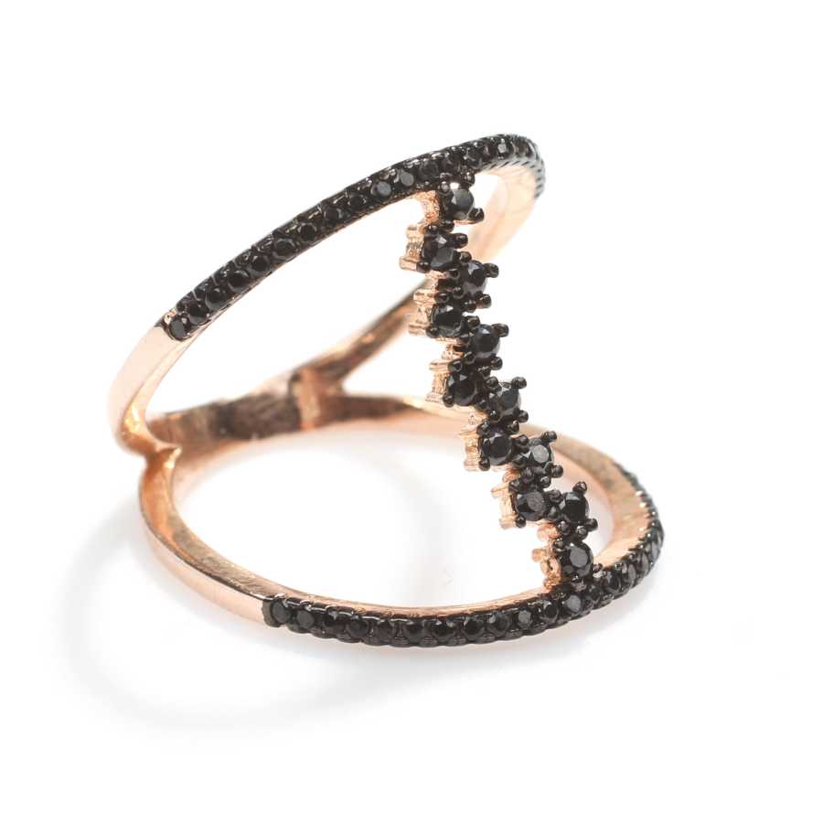 925 Ayar Gümüş Rose Renkli Siyah Taşlı Tasarım Yüzük