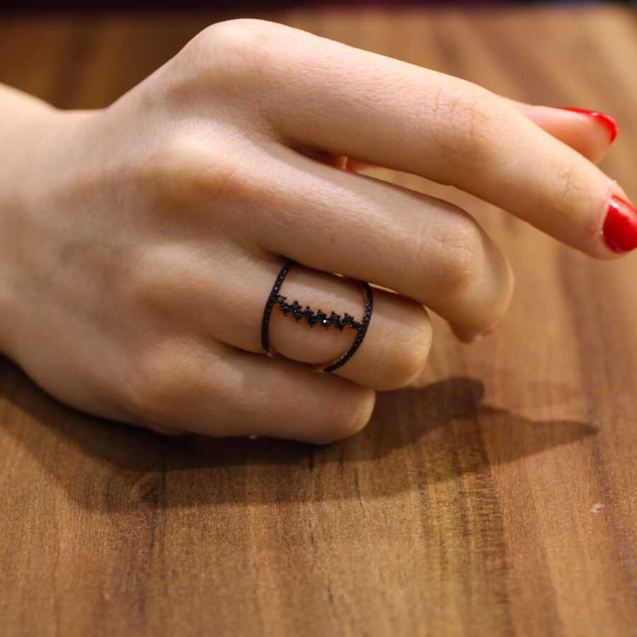 Yüzük 925 ayar gümüşten üretilmiştir. Taşlı yüzük 12 ölçüdür. Tüm ölçüler yapılabilmektedir. Yüzük siyah zirkon taşlara sahiptir. Ağırlığı 3,07 gramdır.