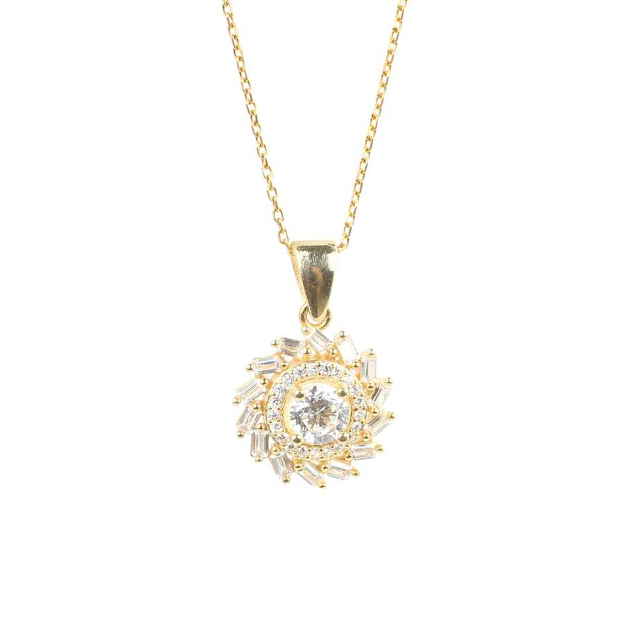 925 Ayar Gümüş Rüzgar Gülü Model Baget Taşlı Kolye