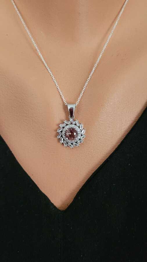 925 Ayar Gümüş Rüzgar Gülü Model Sultanayt ve Baget Taşlı Kolye