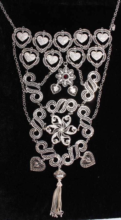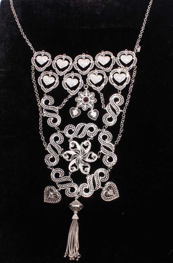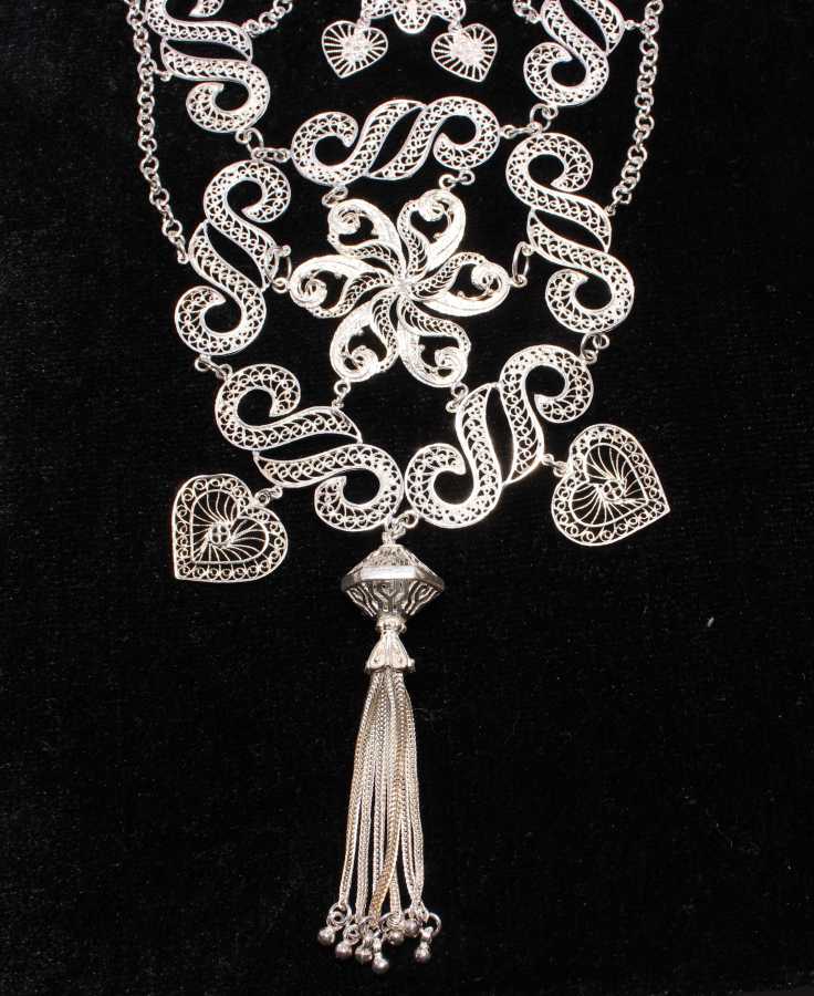 Bu takı, 925 ayar gümüşten yapılmış geleneksel Türk tasarımlarından esinlenilmiştir. 44 cm uzunluğundaki kalp ve S motifli telkari parçalarının bir araya getirilmesiyle birlikte sunulur. Ağırlığı 91 gramdır.