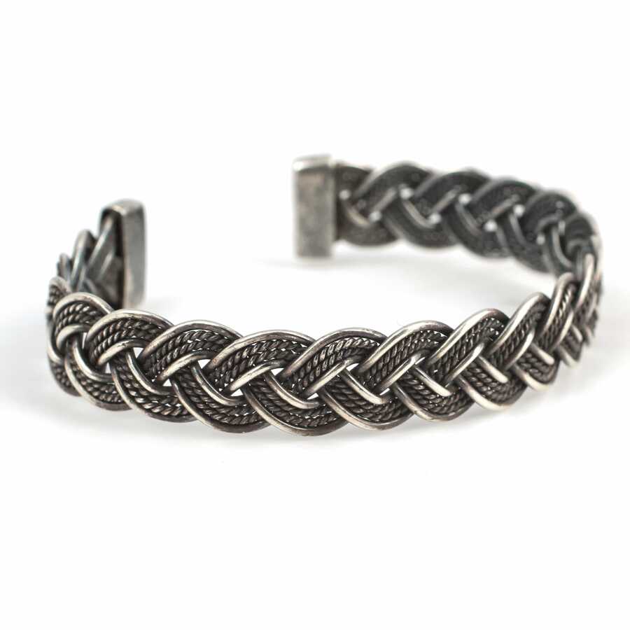 Gümüş bilezik 925 ayar gümüşten imal edilmiştir. Gümüş bileziğin altı açıktır. Örgü model bilezik 5,9 cm çapındadır ve 1,2 cm enindedir. Bilezik taşsızdır ve altı açık olduğu için ayarlanabilir. Ağırlığı 23,57 gramdır.