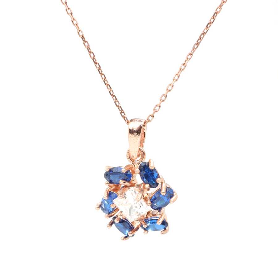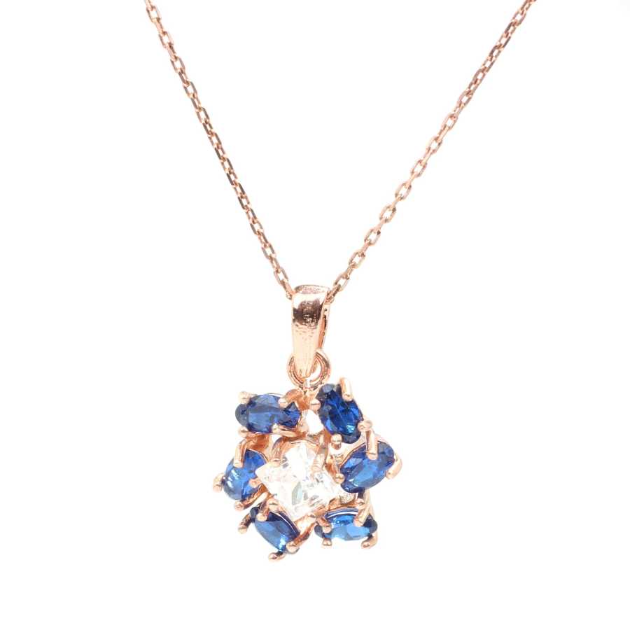 925 Ayar Gümüş Safir Taşlı Helezon Çiçekli Kolye