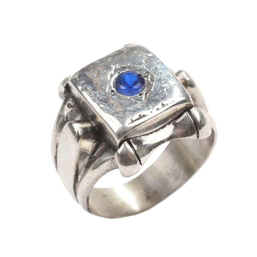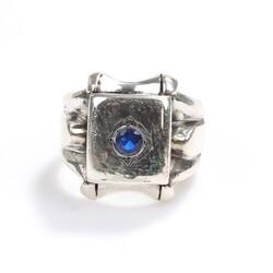 925 ayar gümüştür 19 ölçü 13 x 14 mm kaşlı safir taşlı erkek yüzük. Gramı: 10,7 gr